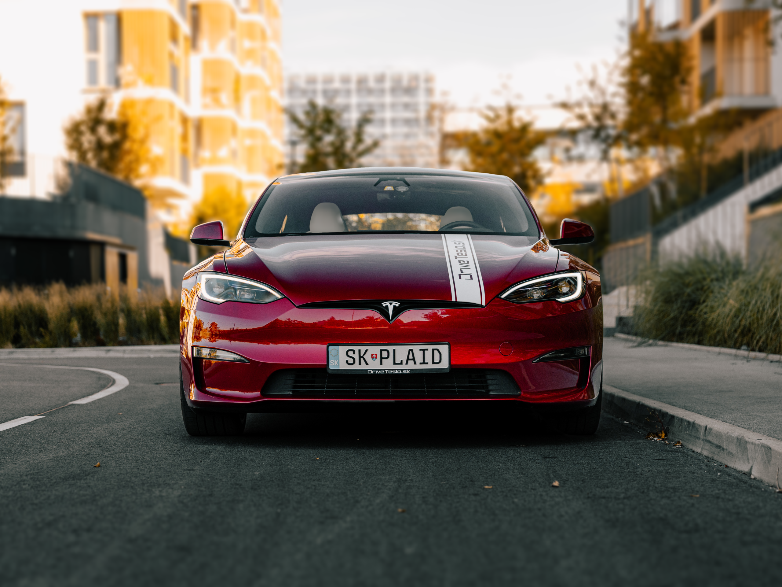 👉 Tesla Model S Plaid (2024) – raketa na kolesách, 2,1 s na 100 km/h, 1020 koní a krásna farba Ultra Red.